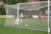 W 11 minucie Kordian Stolarowicz powalczył w obronie, wygarnął piłkę na swojej połowie i podał do Łukasza Makarskiego. Ten odwdzięczył się prostopadłym podaniem na skrzydło. Stolarowicz pobiegł aż do pola karnego i wyłożył piłkę jak na tacy Bartoszowi Danowskiemu.