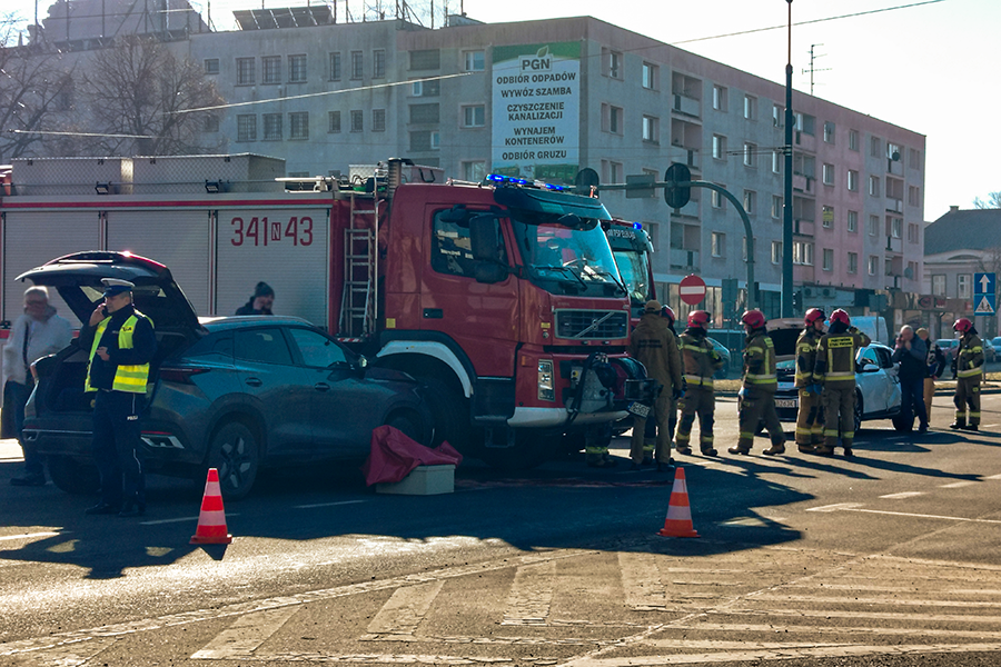 Straż pożarna jechała na sygnale w kierunku Mostu Unii Europejskiej, gdzie miało miejsce zdarzenie drogowe. Straż przejeżdżała przez skrzyżowanie al. Armii Krajowej i 12 Lutego na czerwonym świetle. Zderzyły się z nim dwa inne samochody